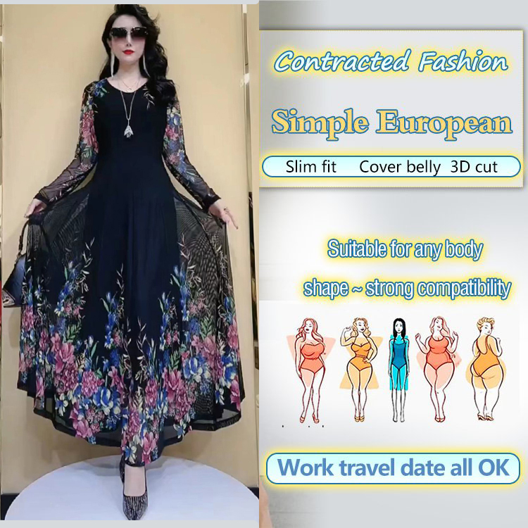 ✨💐【L-4XL】Modna damska sukienka z siateczki z haftowanym nadrukiem